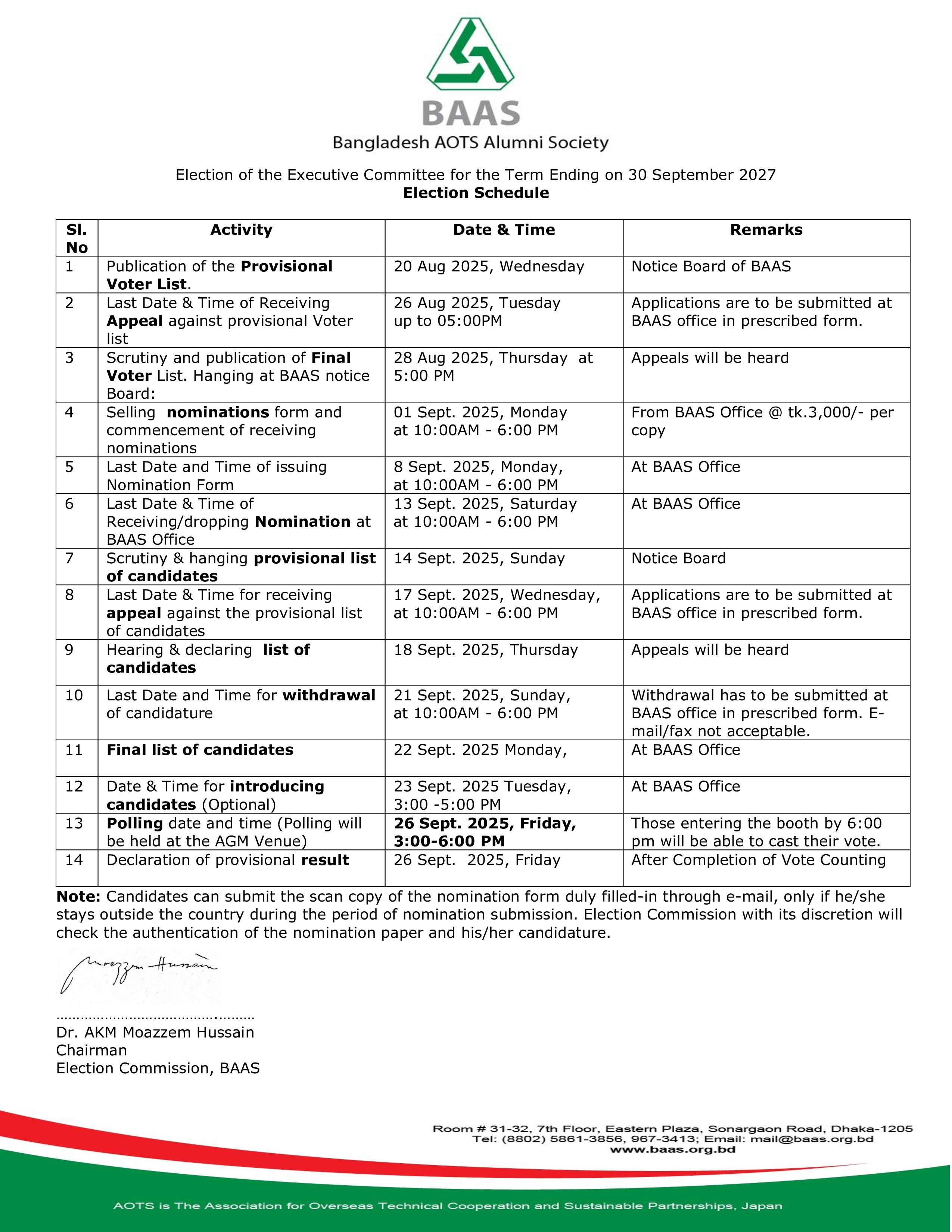 Election of the Executive Committee of BAAS for the term October 2025 - September 2027 Date 11 Aug 2025 To 26 Sep 2025 | Time 03:00 PM To 06:00 PM
